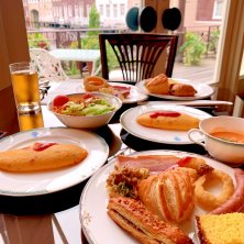 外の景色を楽しみながらの朝ごはん✨ 豚しゃぶとオムレツはLIVEキッチン💕