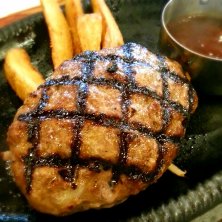 粗挽きアンガスビーフハンバーグ ライス、サラダバー付き