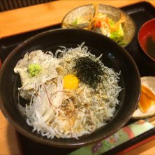 鹿児島の玄関口 鹿児島中央駅近くの【ちりめんしらす店 凪】です。 釜揚げしらす丼にアオサ汁・小鉢が付いて、¥630〜♪ お客さんは地元の方や観光客の方々も多く、味も申し分ないです。 鹿児島へ来られましたら是非(´^∀^`)