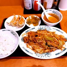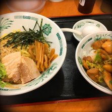 昨日(2月19日(水))の昼御飯 その① 【日高屋 キュービックプラザ新横浜店】 ①バクダン炒め 600円 550kcal、炭水化物45.6g ①、②合計1,602kcal