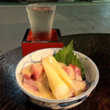 紫波の酒「月の輪」純米にコチ刺し。うまい。