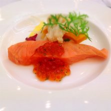 新潟で法事です。 秋鮭のポッシェ 旬野菜のサラダ仕立て