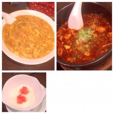 土曜日の夕食 とらは 天津飯 自分は石焼麻婆豆腐 辛さ増量 (^-^)