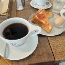 モーニング 本日のコーヒー ケニア みとのお散歩に行ってからモーニングへ お散歩でゴールデンレトリバーの女の子に、嬉しい突撃を受けて、今着れる1着の上着がドロドロに 今日何着て過ごそう(>人<;)