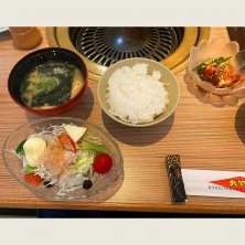 特選カルビ定食 今回の最後の晩餐は 何度かディナーで訪れてますが 前回初ランチで大満足した夾竹園へ。 ご飯、キャベツ、キムチ、サラダ、ご汁、アイスクリームが付いてて、ご飯はお代わりができると言う 凄さ。お肉は贅沢に300gを選択 アイス又はコーヒー、白米又は麦飯、ご汁又はワカメスープだったかを選択できます! お肉はとろけるって感じではないんですが 肉自体の味がめちゃくちゃ旨い! 最高でした。お腹はパンパンで幸せでしたが 寂しいランチでした。
