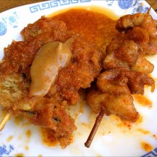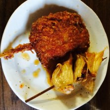 こちらは鶏皮とナス♪ 辛いソースです!うまいうまい!