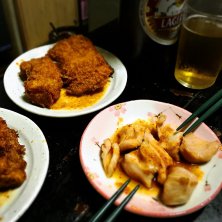 揚げ物5種くらいを辛いタレで #野毛 #桜木町 #横浜