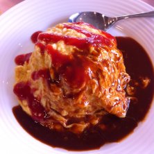 病院内でホテルが運営するレストラン。 オムライスに掛けられたデミグラスソースが!