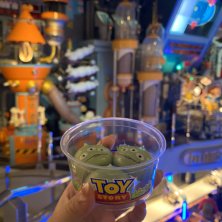💚リトルグリーンメン💚 みんなでモンスターズインク乗った後 パパとお兄ちゃんがスターツアーズ行ってるの待ちだよ☆お土産屋さん寄ったら速攻でカスタマイズ出来るトミカのリゾラ買わされた🤭 自分でパーツを選んだんだよ〜♡