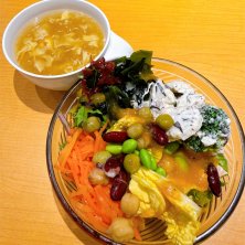 ランチ こんがりニンニクステーキ 四種のスープ飲み放題 コーンスースープ コンソメスープ 鶏と椎茸のスープ クラムチャウダーのスープ
