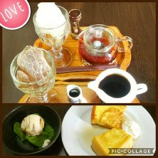 2017年5月17日(水) アフタヌーンサービスとして、ドリンク代(アイスティーとアイス珈琲各400円注文)に、無料で選べるデザート(抹茶わらび餅&黒蜜きな粉アイスとフレンチトースト選択)がついてきた! 両方とも珈琲氷&紅茶氷☆特に紅茶氷珍しい!!最後まで美味しい!2杯以上でたっぷり★