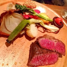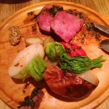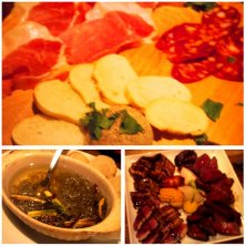 王道な前菜盛り合わせ、白魚とアスパラのアヒージョ、ビステッカ♡