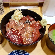 本日のランチ 鮪切り落とし漬け丼 1100円 お椀付き お目当てに3件も振られて💔 久しぶりに来たら、なんとたまたま🤣 本日から値上げ(990⇒1100円) それは此のご時世仕方ないとして。 なんと🍵がセルフになっていた。 回転寿司でよくみる粉の。 (割といい方のだったけど) ポットでお湯を自分で注ぐんだけど、 そっちに驚いた。 …目の前に板さんいるお店なのに😅 (所謂デパ地下だけど~)