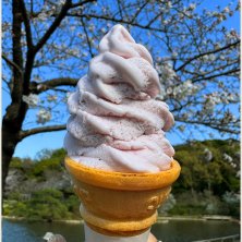 三溪園で桜を観ながら ブルーベリーヨーグルトのソフトクリーム