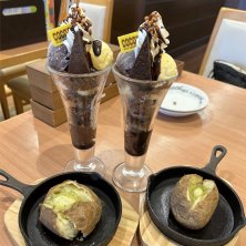 リリックでオータムコンサートを聴きながら🎵 パフェ食べたい!ってなってチョコレートパフェ♡なぜかガーリックバターが効いたベイクドポテト。 めっちゃ満たされたんだけど、隣の人が食べてるしぼりたてモンブラン🧁気になる〜!絶対また来る〜