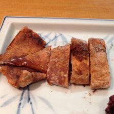 蕎麦屋の佐渡直送丸干しいか。 わたが残っていて、美味。 言わば、沖漬けの干しイカ版。