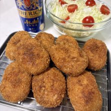 毎年この時期、小樽・三角市場からお取り寄せしている〝北あかり〟が今年も我が家にやって来た〜🤗 てな訳で今宵は… ☆鷹さんのコロッケ🥔 ☆千切りキャベツ&プチトマト🥗 今日のコロッケは以前鷹さんに教えてもらったレシピで… 挽き肉と玉ねぎを牛脂で炒めて、甘辛く調味したすき焼きっぽいテイスト🥰 しっかりめの味のコロッケを揚げたてアツアツでいただくと… もぉ、めっちゃ美味しいやん!!😆 鷹さん、ありがとね👍✨
