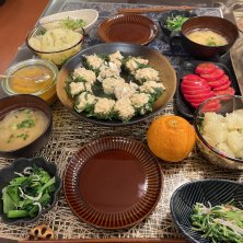 昨夜の。 カリカリ豚と春菊舞茸のおかか炒め 竹輪とさつま揚げのケチャップ煮 春菊の白和え 紅鮭 鯖の冷燻 つぼみ菜のお浸し 安定した一日でした。 帰りに寄ったお魚屋さんで見つけた自家製ソミュール液使用の鯖の冷燻、めちゃくちゃ美味しかった。 道の駅で春菊を買ってたので2品に。 白和えが特に美味しくできました。 やっぱり春菊美味しい✨️