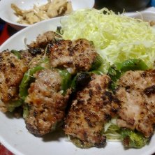晩飯のメイン! 👹🫑荒々しいピーマンの肉詰め‼️ 粗挽きひき肉を拒むピーマンにこれでもかと詰めて炒め 仕上げにバーナーで表面を炙りましたー! これがまた香ばしく荒々しい味わい! 歯ごたえも荒々くて良い!肉汁がジュワッ‼️ めちゃ美味い😋 これ食って…寝る!