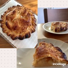 ✳︎クラッシックアップルパイ🍎 🍏1個、ふじ🍎1と1/4個合計正味400g 生のりんごを焼くアメリカンアップルパイ 2年ぶり2回目のクラッシックアップルパイ🍎 初めて作った時は成功したのに、今回は失敗🤣 高温で焼きすぎた💦美味しいを通り越し、ちょっと乾燥💧 ステンレスのパイ皿に焦げて底生地がくっついた😱 りんごは結構とろけて形がなかった。 底からもてっぺんからも噴火🌋 噴火する前にオーブンを止めるべきなのかな❓ よくわからん😂