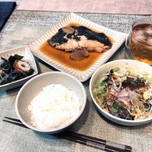 晩ごはん╰(*´︶`*)╯♡ カレイの煮付け サラダ多めでいただきます♪
