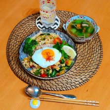 今日の夕ご飯😋🍴 ガパオライス🍳🇹🇭 エスニックサラダ🌶️🥗 野菜スープ