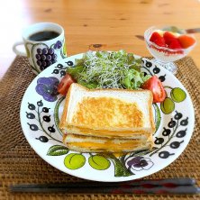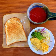 4/10 朝ごはん♪ *ホットコーヒー グァテマラ *フライパンホットサンド 卵+ハム+チェダーチーズ *トマト、サラダ *苺蜂蜜豆乳ヨーグルト 雨の1日ですね☔☔ 久しぶりにフライパンでホットサンド😋 オリーブ油でパンを焼くのでパリッとして風味が美味しい🎶 今日の仕事、近隣学校が入学式らしく、午後から忙しくなる予想😂最近そんなんばっかりで体力が持たない〜!