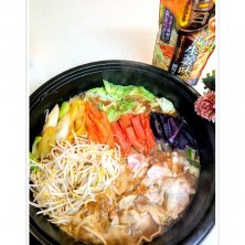 またまた🌟昨日の晩御飯を投稿🥰 昨日は観戦応援📣の帰りに買い物💨 🍲に決まり😍パパさんがまたまた鍋スープの素をチョイス👍 スープは生姜たっぷりの味噌󠄀味🤩 書いてある通りの材料入れて🎶 キャベツ、長ネギ、いろんな人参(黄.オレンジ.赤.黒)、もやし、豚バラ肉 生姜がきいて味噌󠄀味が濃いくて、キャベツが甘くて美味しい✨〆はうどんに🌟パパさんはスライス餅を入れて食べてました🥰 今晩もお鍋🍲にしようかな🌟🎶🍀