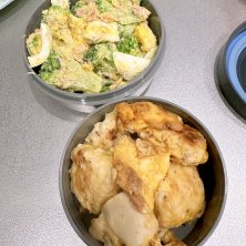 第869回目の旦那弁当🔩🔩 ・玄米 ・ブロッコリーの卵サラダ ・ささみのピカタ 先日、ゆで卵をわんさか頂いたので卵サラダ続く🥚🥚 これは冷凍ブロッコリー、ゆで卵、ツナが入ってタンパク質しっかり取れそうなサラダ🥗😆