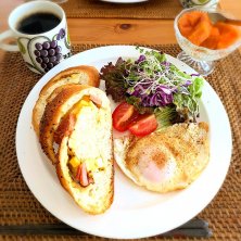 11/27 朝ごはん♪ *ホットコーヒー グァテマラ *ベーコンチーズパン *目玉焼き、トマト、サラダ *柿蜂蜜豆乳ヨーグルト パン屋さんのパン〜🥖ゴロゴロチーズがたくさん、マスタードがきいてて美味しかった🎶久々に食パンじゃない朝ごはん😋 今日はやっと1日お休みだー!けど旦那さんもリモワで家にいるし、練習しに行こうかなぁ〜