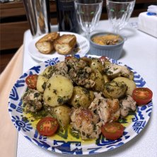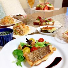 今日の夕飯☆ *桜鯛のポワレ *焼きビーフン *アボカドグラタン *カニカマとキャベツのサラダ *ブルスケッタ2種 *鯛のスープ ミル友さん投稿の鯛のポワレがとっても美味しそうだったのでそのうち作ろうと思ってたら今日鮮魚コーナーで綺麗な桜鯛を見つけ即買い! で、急遽ポワレにしました😅 ソースはバルサミコ酢と赤ワインを煮詰めたモノだけどめっちゃ合います♡ ブルスケッタはアボカドと生ハムとマスカルポーネと蜂蜜の2種! 夫は白ワイン私は梅酒で乾杯•*¨*•.¸¸♬︎