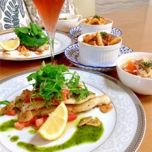 今日の夕飯☆ *鱈のムニエル *ミートソースペンネ *野菜ゴロゴロスープ 今日はずっとPCと睨めっこで頭と眼がヤられた😫💦 嫌な疲れ方だなぁ… 今日は冷蔵庫の中の野菜を消費したくてこんな感じの夕飯に😅 鱈はカリッと焼いてバジルとパセリのソースで! スパークリングワインを1杯だけ飲んじゃった🍷