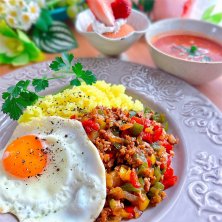 ガパオライス ミネストローネ ガパオライス大好き ライスはテンション上がるから ターメリックで黄色にしてる 具材はパプリカ、玉ねぎ、ピーマン あれば茄子 そして大豆ミート オイスターソースとナンプラーと 成城石井のジェノベーゼペースト 少しのオリゴ糖で味付け 色んなレシピがあるけど 生のバジルは 新鮮なものが手に入らないこともあるから 私はこれでいいかな 今日は予報では春の嵐 こちらは雨風は 大したことなくてよかったけど 雨が止んだら湿気がすごい💦