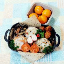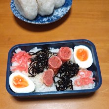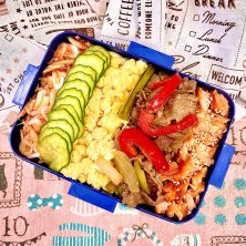 娘のお弁当です🍱 『5色弁当』を作りました✨ ❄️小海老🦐 ❄️塩もみきゅうり🥒 ❄️炒り卵🥚 ❄️プルコギ ❄️焼き鮭 今日は寒いですね🥶 期末テスト1日目📝 みんなファイト!