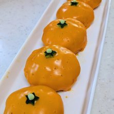 🍊みかんおにぎり🍙 ネットで見つけたレシピを参考に作りました 今日はみかん好きの孫が来るので喜んでくれると良いのですが… 中はケチャップご飯にして、チェダーチーズをのせ、レンチンして形を整えてから楊枝で周りに穴を開け、キュウリでヘタを作りました