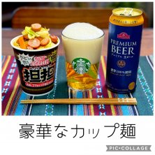 こんばんは! 【アルモンデ】 今日、妻は出先でお腹いっぱい食べてきたようで 「晩ご飯要らなーい」とのこと。 ということで、私だけで アルモンデ晩ご飯にしました。 ・豪華なカップ麺 ・AEONのビール 冷蔵庫にあったお野菜と 刻んだシャウエッセンを炒めて カップ麺にトッピングしました。 とっても美味しかった。