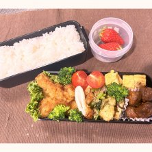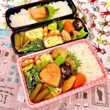 娘と夫のお弁当です🍱 ❄️焼き鮭 ❄️筑前煮 ❄️海老のマヨ炒め ❄️カニカマ&ネギ入り卵焼き ❄️菜花のごま和え ❄️フキの麺つゆ炒め https://cookpad.com/jp/recipes/20082601 ❄️そら豆 新年度がスタートしました✨ 新たな気持ちで頑張らないと!