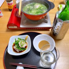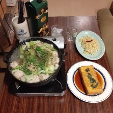 ~11月25日の夜ごはん~ この日はお肉で和食なので、焼酎ロック♪ダンナはお水。 鶏ひき肉。 春雨と鶏つくね鍋にしました。 箸休めは ・厚揚げステーキ&青じそバター醤油ソース ・もやしのたくあん炒め 前日も和食だったけど、翌日洋食にしたいと思い和食に。冬瓜も売っていたし、簡単にお鍋のレシピにしました。 今週はプールも行きたいけど、美容室にも行きたいし、夜ごはんの献立が難しい。