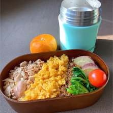 今日のパパのお弁当🍱 在宅が続き、久々のお弁当〰️💡 メニュー⏬ 海老カツ ほうれん草ナムル ウインナー 長芋ソテー 蓮根ゆかり漬け ミニトマト、コーン 海老カツ、俵成形にしてみました💡 気分は豚カツ🎶 でも、海老だからカロリーゼロ♡ →ンナワケアルカ🤣💨 さ、今日明日は暖かくなりそう🌸 立春が過ぎ、今日は大安❗ 天気もバッチリ🌞 早速お雛様🎎出さないと❣️ 今日も楽しい1日を💖