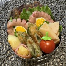 2026.02.05 腹ぺこのお弁当♪ ❀鯖の竜田揚げ(ノンフライ) ❀ウィンナーうずら卵 ❀筍の土佐煮 ❀竹輪の磯辺焼き ❀ポテトベーコン巻き ❀ミニトマト おはようございます(*ˊ˘ˋ*) 鯖の竜田揚げはノンフライ ちょっと焦げてますが、味み用の一切れ 美味しくいただきました(*'ڡ'*)* ちゃんと竜田揚げ~♬ なぜ鶏肉だと上手くできないんでしょう?! 謎だ…🤔💭