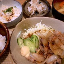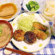 4日、水曜日の晩ごはん♪ ☆ピーマンと、椎茸バーグ ☆小松菜のおひたし ☆コープさんの骨取り鯖味噌 ☆納豆汁 ☆柚子大根(成城石井) 真ん中のバーグは、焦げてるわけではありません(笑) ひっくり返った椎茸です(*´艸`*) 鍋の肉団子用のタネが残ってたので、 ピーマンと椎茸にのっけて焼いた☆彡 成城石井で買ってた、柚子大根のお漬物、 柑橘がきいてて、爽やかで美味しいψ(๑´ڡ`๑) 昨日から3日間だけ、温かくなって、また寒波がくるそうなので、また寒暖差にヤラレそうです〜(੭ ᐕ))🐾