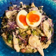 おはようございます\(//∇//)\ 朝晩の冷え込みと乾燥がこたえますね そして肝の影響を受けやすい私は温かいスープは脾胃を助かる有効な食事 仕事終わり、近所の立飲み屋さんで整いからのおうちご飯です パワースープ Zuppa di verdure, pollo, avocado, broccoli, funghi, melanzane, radice di loto, patate, carote, uova, pomodorini, tofu, fagioli misti, germogli