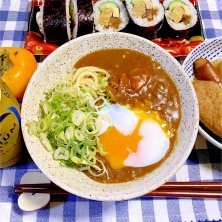 11日、土曜日の晩ごはん♪ ☆カレーそば ☆田舎巻き寿司 ☆コンビニおでん ☆柿 カレーの残りは、やっぱり、カレーそばにしちゃいました(*´艸`*) 極太麺の、中華そばに、ネギと、温玉トッピング、混ぜてすすると、カレーが、 飛びますっ、飛びます〜♬ 買い物いって、なんたが、太巻き寿司が美味しそうなので、買っちゃいましたψ(๑´ڡ`๑) 柿は柔らかいのが好きなので、もう少し、 置いて熟すのを待ちます(笑)