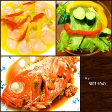 パパと子供達のCooking💖 昨日の私のBIRTHDAY、パパや子供達が料理に励んでくれました💖 金目鯛の煮付け(パパ) ホタテのカルパッチョ(娘) サラダ(息子) 手羽先塩焼き、カボチャスープ(🤳無し、私) 金目鯛の煮付け、私はみりんが入ったものが苦手なので、自分の配合をパパに伝授✨ めっちゃ美味しい〰😍! 娘はカルパッチョ✨ホタテの旨味が活きる味付けが堪らない〰❗娘はだし巻き卵も♡ 息子はサラダでお顔を💖豪快すぎる野菜のカット🤣❗ 楽しい美味しい幸せな夕飯でした💖