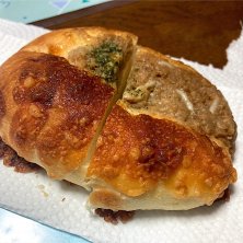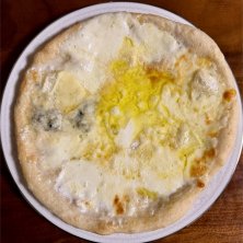 今日の夕食は家でピザ😊 前回作ったクアトロフォルマッジが妻に好評だったので、また作りました♬ モッツァレラ、ゴルゴンゾーラ、パルミジャーノ、カマンプールで、今回も美味しくできました😋