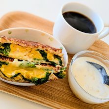 2026.1.18︎🌟昼ごパン🍞︎🌟 ︎♥︎半熟スクランブルとチーズのᴴᴼᵀサンド🥪 ︎♥︎バナナヨーグルト🍌(蜂蜜🍯・リンゴ酢🍎) ︎♥︎ᴴᴼᵀコーヒー☕ ⋆┈┈┈┈┈┈┈┈┈┈┈┈┈┈┈⋆ 今日もコレ‼️昨日と同じ。 カチカチ食パンも無くなった🍞 写真📸撮るとやっぱり違うんよねぇ~ 半熟に見えてないし。 記録で残すなら綺麗に残したいのに、いっつもこんな感じꉂ🤣𐤔 もぉやだぁぁぁ〰