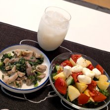 2025.12.10︎🌟おつまみ︎🌟 ✰コリコリ塩ホルモン ✰リンゴ入りカプレーゼサラダ風🥗🍎 ✰バナナマッコリ🍌 ✰ᴴᴼᵀほうじ茶(サンファイバー) ⋆┈┈┈┈┈┈┈┈┈┈┈┈┈┈┈⋆ また今日も地味~な物‼️ ホルモン食べたくて焼いたけど、硬くて半分も食べれず😂😂 噛み切れないから無理だゎ~あれ‼️ それ知ってれば煮て柔らかくしたのにな~。 ホルモンは焼肉屋さんで食べるのがいいね🤤