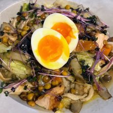 おはようございます\(//∇//)\ 少し穏やかな昼間、夜もそこまで寒くは感じませんでしたね 仕事終わり、帰宅後のおうちご飯です パワースープ Zuppa di verdure, pollo, funghi, melanzane, radice di loto, radice di bardana, cavolo, patate, carote, uova, pomodorini, lenticchie, germogli 前日のもつ鍋食材の余り(牛蒡とキャベツ)も投入して、ちょっと具沢山