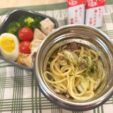 息子の弁当 おはようございます❄️ KALDIのホワイトボロネーゼソースを使用してみた‥‥けど、合えるパスタを多めに&具材をプラスして混ぜ込んだらいつもの炒めパスタになっちゃった🤭 後がけすれば良かったーー💦 まぁ息子にとっては〝いつもの〟って認識だから良いかwww チキン&ブロッコリーサラダと