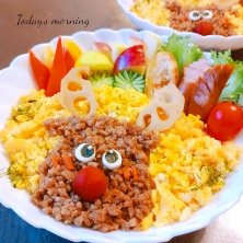 今朝の子供たちのMorning💖 ちょっとX'mas🎄トナカイ2色丼🎄 今朝はそぼろと卵の2色丼でトナカイ♡ ちょうど蓮根のきんぴらを常備してたので角に使いました💡 真っ赤なお鼻はカリカリ梅🤭 息子が混ぜ混ぜするのを躊躇って、私に混ぜてくれと😂 いつも豪快に混ぜるのに(笑) さ、今日からしばらく書道の講師関係の仕事が続きます💦 頑張ろ〰️❗ 今日も素敵な1日を💖